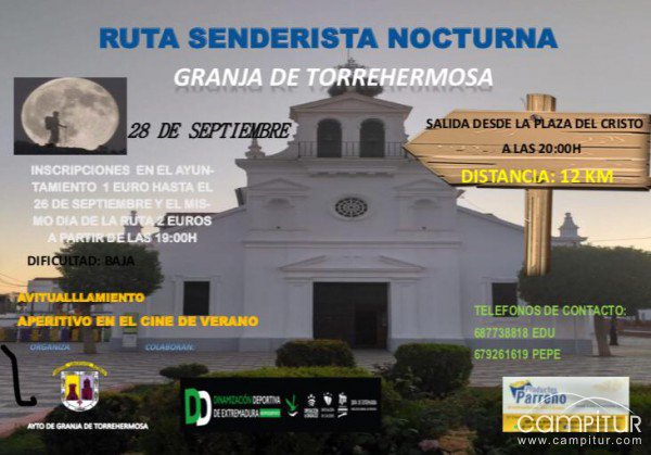 El sábado, 28 de septiembre, Granja de Torrehermosa acoge la celebración de una Ruta Senderista en la localidad.