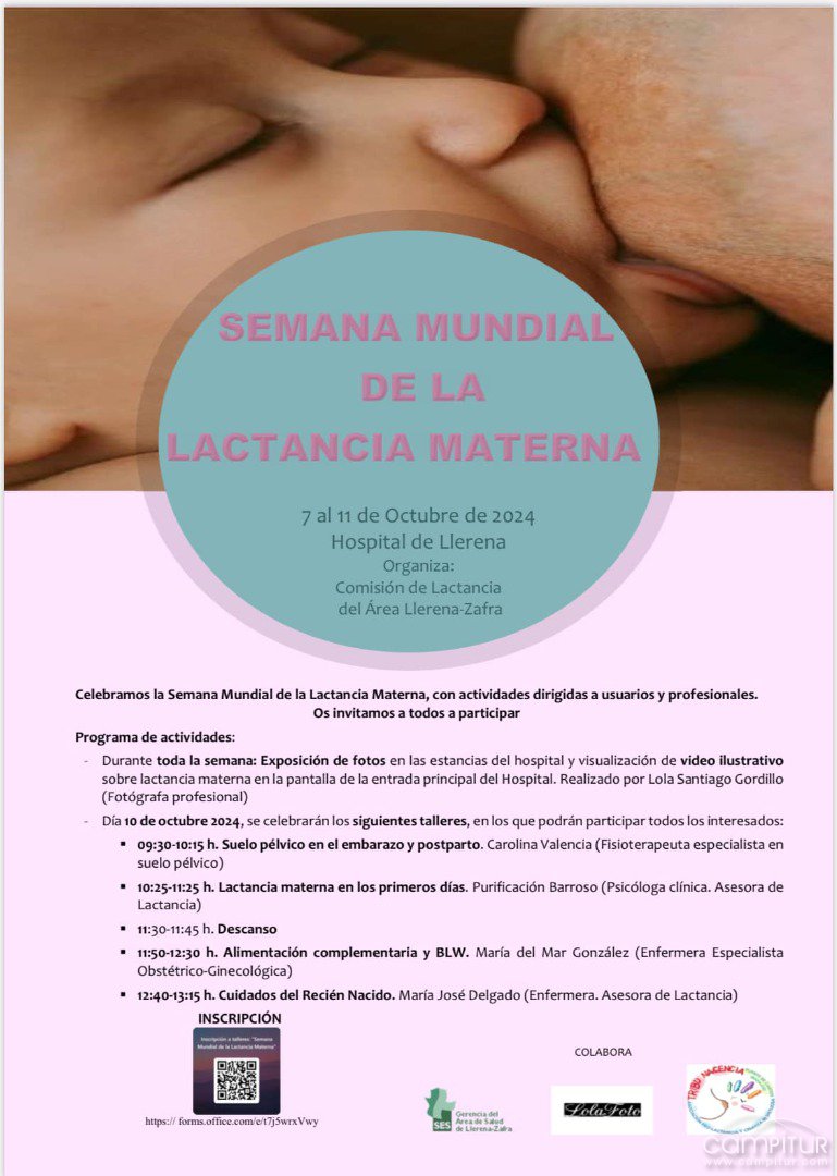 El Hospital de Llerena, en colaboración con la Comisión de Lactancia del Área Llerena-Zafra, celebra la Semana Mundial de la Lactancia Materna del 7 al 11 de octubre de 2024. Durante toda la semana, se llevarán a cabo diversas actividades dirigidas a usuarios y profesionales, con el objetivo de promover y apoyar la lactancia materna en todas sus etapas.